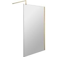 Features: 8mm toughened safety glass Single-sided 'Shower Shield' coated glass Shower tray sold separately Includes brushed brass support bar and profile kit Specifications: Dimensions: H:195.0 x W:110.0 x D:1.4 cm Colour: Brushed Brass Guarantee:Lifetime Manufacturer's Warranty Material: Glass Model Number: WRSBB11
