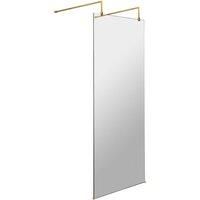 Features: 8mm toughened safety glass Single-sided 'Shower Shield' coated glass Includes brushed brass support arms and feet All wet room screens are backed by a lifetime guarantee Specifications: Dimensions: H:195.0 x W:69.8 x D:1.4 cm Colour: Brushed Brass Guarantee:Lifetime Manufacturer's Warranty Material: Glass Model Number: BBPAF070