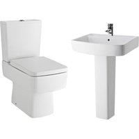 The Balterley Optic Compact Bathroom Suite combines a semi-flush toilet with a dual-flush cistern and soft-close seat, plus a 600 mm basin with full pedestal. Made from durable vitreous china with a sleek angular design, its easy to clean, space-efficient, and built for reliable everyday use. | Balterley Optic Compact Suite: Toilet with Soft-Close Seat, 600mm Basin Pedestal in White