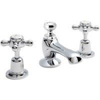 Victrion Crosshead 3TH Basin Mixer Features: Classic timeless design Luxury crosshead handle with white indices Chrome finish Suitable for low pressure systems Ceramic disc technology for long life and smooth operation High quality brass internals Specifications: Dimensions: H:94.0 x W:246.0 x D: cm Colour: Silver Guarantee:1 Year Model Number: CTA025