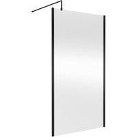 - Manufactured from high quality toughened 8mm safety glass for your peace of mind. With an eye-catching and luxurious Satin Black profile and outer frame, it will perfectly complement any modern bathroom design. Wall fixed with top support arm.