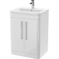 Nuie Parade Gloss White 600mm 2 Door Floor Standing Vanity Unit with Ceramic Bas