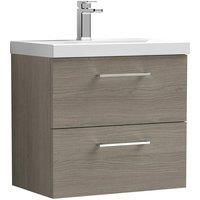 Nuie Arno Wall Hung 2-Drawer Vanity Unit & Basin-3 600mm - Solace Oak Woodgrain