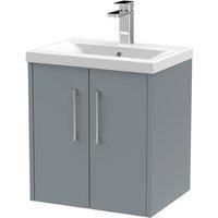 Hudson Reed Juno 500mm Wall Hung 2 Door Vanity & Mid-Edge Basin - Coastal Grey