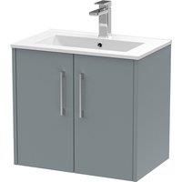 Hudson Reed JNU2323B Juno Modern Bathroom Wall Hung 2-Door Vanity with Minimalist Ceramic Basin, 600mm, Matt Coastal Grey
