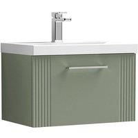 Nuie Deco 600mm Wall Hung Single Drawer Vanity & Basin 3 - Satin Reed Green