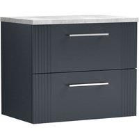 Nuie Deco 600mm Wall Hung 2 Drawer Vanity & Bellato Grey Laminate Top - Satin Anthracite