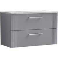 Nuie Deco Wall Hung 2-Drawer Vanity Unit & Grey Worktop 800mm Satin Grey