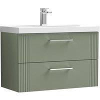 Nuie Deco 800mm Wall Hung 2 Drawer Vanity & Basin 3 - Satin Reed Green