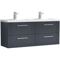 Nuie Deco 1200mm Wall Hung 4 Drawer Vanity & Double Polymarble Basin - Satin Anthracite