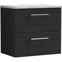 Nuie Arno WH 2-Drawer Vanity Unit & Grey Worktop 600mm - Charcoal Woodgrain