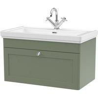 Nuie Classique 800mm Wall Hung 1-drawer Unit & Basin 1 Tap Hole - Satin Green