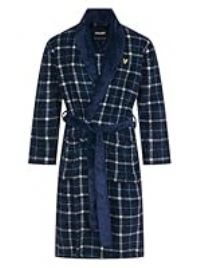 Lyle & Scott Cassidy Check Bathrobe Lyle and Scott Cassidy towelling check print bathrobe with contrasting collar and belt.Featuring the classic embroidered eagle. Perfect for any occasion or gifting. Material Content: 260GSM 100% POLYESTER