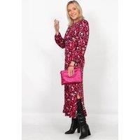 Long sleeve midi tea dress with empire line bust. FIT - Round neck Long sleeves Empire line bust Side splits Midi length Fit and flare SIZE Gillian is 5'10" and wears a UK 8 / EU 36 / US 4 - Wearing size: Small (UK 8-10) Cirila is 5'10" and wears a UK 8 / EU 36 / US 4 - Wearing size: Small (UK 8-10). FABRIC - Made from a soft viscose for a luxurious look., 100% Viscose, Made in China. PERFECT FOR - Christmas party, night out, special occasion