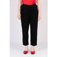 Crafted from 100% natural cotton, these classic black trousers are designed for comfort. A soft babycord design, showcasing a high waist, tapered leg and a turned up cuff.