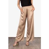 These silky trousers are crafted from a smooth lightweight viscose. Designed to sit high on the waist, these wide leg trousers flow subtly creating a comfortable yet chic silhouette.