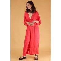 This coral dobby jumpsuit is bold, colourful and effortlessly chic. Featuring a gold metallic pinstripe, wide flared leg, plunging v neckline and shirred waistline creating a flattering silhouette.