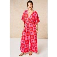 Get this Sarta Women's Palm Tree Checkerboard V Neck Jumpsuit in Hot Pink in Bright Pink | Size: Small from Debenhams for only £60.00. We found this offer 2+ weeks ago, so hurry whilst stocks last!
