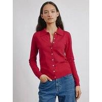 Albaray Button Through Polo Top Upgrade your style with our red knitted button through polo top. Made with a blend of cotton and cashmere, it offers pure comfort and luxurious style. With long sleeves, a button down front, and a collar, this red top is the perfect addition to your wardrobe. Material Content: 35% Cotton 27% Nylon 27% Viscose 7.5% Wool 3.5%