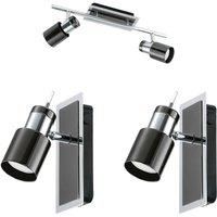 Twin Ceiling Spot Light and 2x Matching Wall Lights-Black Nickel Chrome Shade Head Kit Contents: 1x Ceiling Light 2x Wall Light Ceiling LightTechnical Specification : Type: Ceiling LightStyle: ModernWEIGHT: 1.044 KGLength: 390mmWidth: 70mmMaterial: SteelFinish: Nickel Voltage: 240VIP Rating: IP20Wall LightTechnical Specification : Type: SconceStyle: ModernWEIGHT: 0.611 KGLength: 165mmWidth: 70mmMaterial: SteelFinish: Nickel Voltage: 240VIP Rating: IP20Alias: g03295