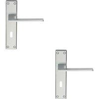 2x Flat Straight Lever on Lock Backplate Door Handle180 x 40mmSatin ChromeTechnical Specification: Finish: Satin ChromeDimensions: 180mm x 40mmUnit: PairPackaging: BoxedPlease note that you are purchasing a pack containing TWO of a product. If you are purchasing a PAIR of door handles, you will receive TWO pairs, FOUR door handles total. All products listed in packs are also available individually, please see our other listings or contact usFurther Information : We offer a wide range of door handles, kn...