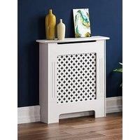 Vida Designs Oxford Small Radiator Cover in White Not only a great way of making a radiator look more appealing, this small Oxford cover by Vida Designs also provides an extra shelf in your room where you can show off plants, books, ornaments and more. The cross pattern at the front creates the perfect mix of elegant style and ventilation, so the heat of your radiator is able to flow out into your room. Made from sturdy MDF, the cover is finished in a powder coated white paint. Technical Information: Ma...