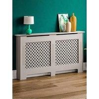 Vida Designs Oxford Large Radiator Cover in Grey Not only a great way of making a radiator look more appealing, this large Oxford cover by Vida Designs also provides an extra shelf in your room where you can show off plants, books, ornaments and more. The cross pattern at the front creates the perfect mix of elegant style and ventilation, so the heat of your radiator is able to flow out into your room. Made from sturdy MDF, the cover is finished in a powder coated grey paint. Technical Information: Mate...
