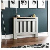 Vida Designs Arlington Medium Radiator Cover Versatile and space-saving radiator cover has been finished with neutral paint and melamine oak effect veneer top board. It offers not only visually appealing addition to any room, but also it acts like an extra shelf for some of your accessories, decorative elements, and plants. Featuring vertical line pattern, it has a perfect combination of design and ventilation construction which means you do not lose any heat and uplift room interior. Technical Informat...