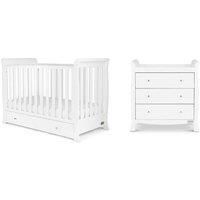 The Snowdon Mini 2 Piece includes the 4 in 1 Mini Cot Bed and full-size Changing Unit. These pieces have a distinctive and traditional sleigh design, and they are perfect for the space conscious parent. Features: Adjustable, three-position base height Both ends split down easily for conversion from cot to toddler bed Premium Sprung Mattress included Cot Bed external dimensions: 91(h) x 65.5(w) x 134(d)cm Specifications: Dimensions: H:91.0 x W:65.5 x D:134.0 cm Colour: White Guarantee:2 years Material: M...