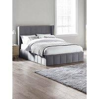Julian Bowen Katie Upholstered Lift Up Bed Classic design meets modern living in this stylish winged ottoman bed, upholstered in grey velvet for a rich, soft finish. The tall headboard with winged sides adds structure and presence to your space while offering a comfortable surface to lean back against. Built with an ottoman mechanism, the frame lifts easily to reveal generous underbed storage, perfect for blankets, clothing, or other home essentials. A versatile choice suited to both modern and traditio...