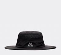 Montirex Trek Boonie Hat in Black. Built for summer urban exploration Montrirex are taking the active leisure wear trend by storm. Featuring a durable woven fabric that's lightweight and quick drying, reflective branding and bungee cords for size adjustment and additional mesh panelling and eyelets for maximum breathability. Black Size - ONE SIZE