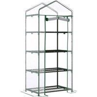 Protect and grow your plants in cold weather outside with this portable greenhouse from Outsunny. Made with a strong powder coated steel frame, it features four inside shelves to keep your plants, herbs and vegetables neatly displayed and organised. On the outside is a transparent PVC cover which allows sunlight to reach the flowers and plants, and it is finished with two zips for quick and convenient access. It's ideal for those with little space, such as balconies and patios. Features and Benefits SM...