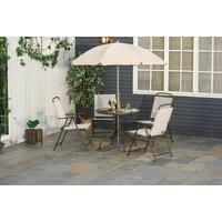 With this Outsunny seven-piece outdoor dining set, you can quickly create a great place to hang out outdoors, spending time with your friends and family. It comes with six chairs and a large rectangular table - the glass table top creates a beautiful, sleek look. The table has a hole in the middle, allowing you to place a parasol umbrella for lots of shade against the sun. Start enjoying your time outside this season and beyond.
