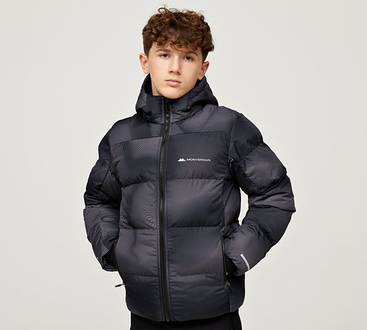 Monterrain Junior Endurance Puffer Jacket in Jet Black. Designed for comfort and durability, this puffer jacket offers all-day protection from the elements without compromising on style. Packed with lightweight synthetic insulation, this jacket traps heat efficiently, ensuring you stay cosy even in colder weather. The durable outer fabric features a water-resistant coating to protect against light rain and snow, making it ideal for unpredictable weather. Finished with subtle Monterrain branding for a st...