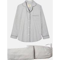 Sleep for Britain in these gorgeous pyjamas. It's the detail and finish that makes them so special. Theyre cut from the same cloth we use for our private-label Jermyn Street production; an exquisite cotton twill, which is created using lightly brushed, breathable fibres that will keep you cool in summer and warm in winter. This set comprises a rounded-collar jacket with a curved hem and a breast pocket, and tie-waist trousers with handy side pockets (by popular demand!). The jacket is finished to perfe...