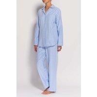 Cosy up in our dreamy brushed-cotton pyjamas. These PJs are exquisite and it's all thanks to the fabric. The fibres in the cloth are dyed to our own colour specification, then brushed repeatedly - a process which makes them impossibly soft - and finally they are woven with skill to our in-house design. This set comprises a traditional rounded-collar jacket with a breast pocket, and tie-waist trousers with handy side pockets (by popular demand!). If you're unsure about which size to choose, we recommen...