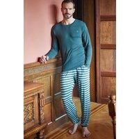 British Boxers Men's "Pine Forest" Stripe Bamboo Pyjama Set in Green | Size: Large