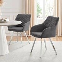 The Falun dining chair is a modern carver chair design with quilted diamond stitching to the inside. Comfortable and super-stylish, with postmodern midcentury touches, the chair's combination of curves and straight lines keeps it fresh and eyecatching. Sat on elegant angled legs, this chair will suit any modern decor. These modern dining chairs are upholstered in a dark grey fabric to add depth and texture to the design. For an ultra modern touch on your dining set, choose this silver chrome leg design... - Manufacturers part number: FurnitureboxUK_5056542628474