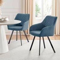 The Falun dining chair is a modern carver chair design with quilted diamond stitching to the inside. Comfortable and super-stylish, with postmodern midcentury touches, the chair's combination of curves and straight lines keeps it fresh and eyecatching. Sat on elegant angled legs, this chair will suit any modern decor. The rich blue fabric of this dining chair adds a pop of subtle colour to your room. The black powder coated metal legs have a matte effect which adds an industrial design to these contemp... - Manufacturers part number: FurnitureboxUK_5056542628528
