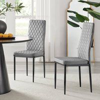 Upholstered in soft touch velvet and finished with diamond pattern stitching the Milan dining chairs would seamlessly fit in with most dining spaces, whilst not compromising on either style or comfort. The stylish black powder coated metal leg and hatched velvet combination gives this chair a contemporary edge, whilst it's simple design allows for practical everyday usage. The chairs are made from high quality durable velvet that's easy to keep clean and are ergonomically designed for maximum comfort ... - Manufacturers part number: FurnitureboxUK_5056542691577