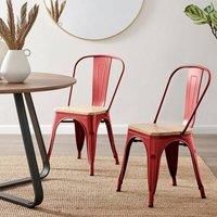 Our Colton red metal dining chairs with solid wooden seat (pair of 2) are stackable, stylish and made of steel. We love versatile dining room furniture and these are just the ticket. Our take on the classic Tolix mid century chair design created for commercial seating at restaurants, these chairs are designed to be comfy to sit on for longer periods, are lightweight, durable and easy to move around. They perfectly capture that laid back bistro cafe vibe and will look fab in your Industrial style kitchen... - Manufacturers part number: FurnitureboxUK_5056542692451