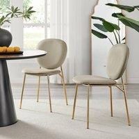 Our Ivy velvet dining chair with gold legs is a modern chair with a few vintage retro nods that will look fab in your dining or kitchen space! The rounded chair back and seat and tapered gold metal legs give this a bit of glam flair. Upholstered in soft touch velvet and ergonomically designed to keep you supported and comfy while you sit in style. Available in multiple fabric colours, so check out the full Ivy range today! | FurnitureboxUK Set of 2 Ivy Modern Velvet Dining Chairs On Gold Legs - Vintage Retro Nod in Taupe - Manufacturers part number: FurnitureboxUK_5056542696732