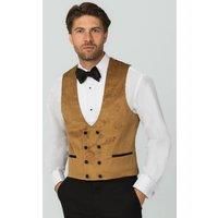 Dobell Mens Gold Paisley Velvet Tuxedo Waistcoat Regular Fit Double Breasted-XL (46-48in)