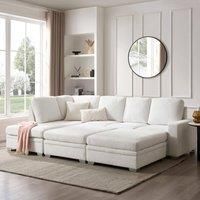 Home Detail Alcott Corner Sofa, Left Hand Facing With Double Footstool in Cream