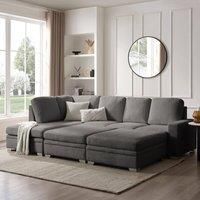 Home Detail Alcott Corner Sofa, Left Hand Facing With Double Footstool in Dark Grey