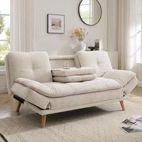 Introducing the Lilly sofa bed. Lilly features tufted detailing on the backrest, a centre pull-down cupholder tray, with generously padded seat and adjustable armrests; it stands on natural tapered legs. Lilly is available in beige, grey and green chenille fabric. This sofa bed is a large item, therefore we require you to ensure it will fit through any access doors and walkways up to and within your property. Please consult our sofa fit guide which you can find in the pictures section. Minimum door widt...