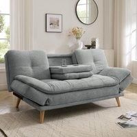 Introducing the Lilly sofa bed. Lilly features tufted detailing on the backrest, a centre pull-down cupholder tray, with generously padded seat and adjustable armrests; it stands on natural tapered legs. Lilly is available in beige, grey and green chenille fabric. This sofa bed is a large item, therefore we require you to ensure it will fit through any access doors and walkways up to and within your property. Please consult our sofa fit guide which you can find in the pictures section. Minimum door widt...