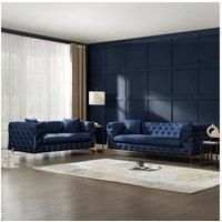 Introducing Jaguar our luxury velvet sofa range. Jaguar boast a chesterfield inspired design on the seat and backrest and wrapping around the outside of each seating option. With stunning long gold French-wing legs Jaguar will certainly be a centre piece in every room. We've handpicked beautiful velvet fabric colours we know you will love! Choose from our lovely shades of cream, dark green, dark blue or dark grey to show off your unique style and personality. This Jaguar set includes 1 x 2-seater and 1...