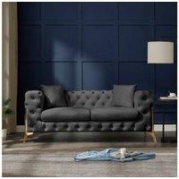 Home Detail Jaguar 2 Seater Sofa Chesterfield Design Velvet Fabric in Dark Grey