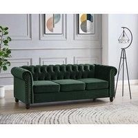 Home Detail Chesterfield Sofa Velvet Upholstered Couch in 2 Seater or 3 Seater Fabric Sofa in Grey, Blue, Black, Green, Gold (3 Seater, Green)